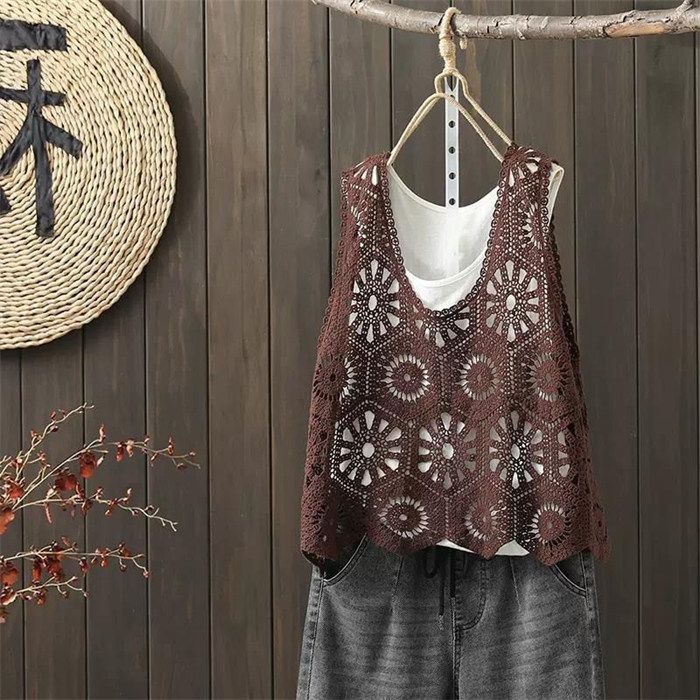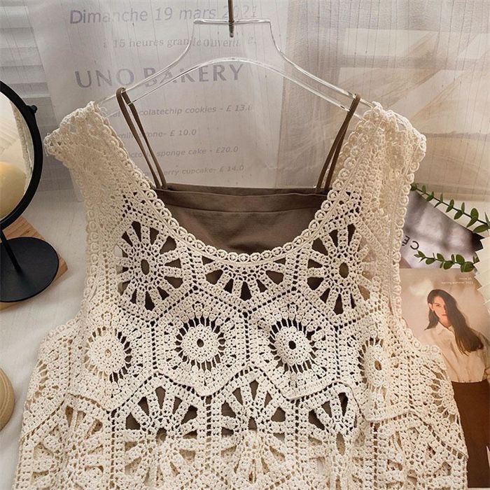 レディース トップス ベスト プルオーバー 夏 透かし編み プルオーバー Uネック かぎ編み カジュアル 無地 レイヤード クロシェ編み ニットベスト きれいめ フェミニン ノースリーブ 大人可愛い 体型カバー 着痩せ おしゃれ 涼しげ 大きいサイズ 送料無料