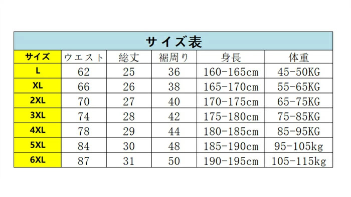 サイズ:L、XL、2XL、3XL、4XL、5XL、6XL