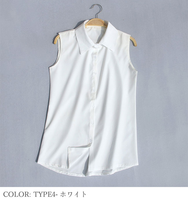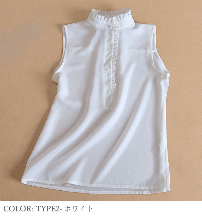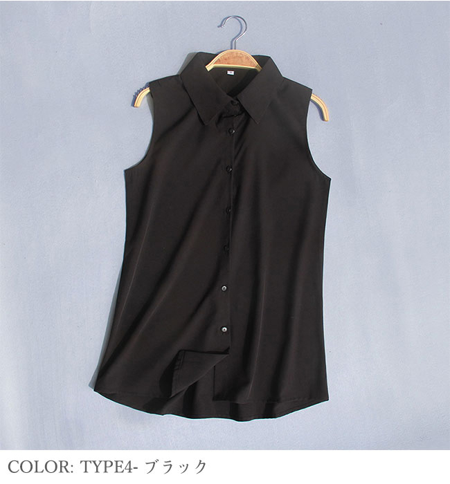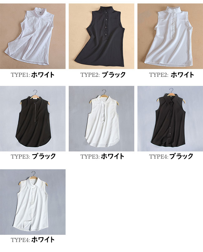 ノースリーブ 襟付き ブラウス 大きいサイズ レディース ブラウス タンクトップ シャツ 襟付き シャツブラウス Yシャツ インナー スーツ 白 ブラック シフォンシャツ 黒 秋 冬 春 夏 OL 通勤 レイヤード 無地 袖なし