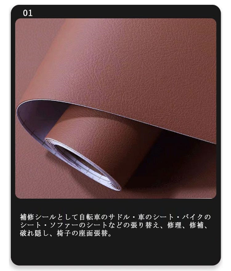 用途:補修シールとして自転車のサドル・車のシート・バイクのシート・ソファーのシートなどの張り替え、修理、修補、破れ隠し、椅子の座面張替。内装、レイアウト、壁紙、インテリア、撮影用スクリーン、小物づくり、DIYなどにも使用でき、色々な用途にご利用いただくことができます。化粧箱、ギフトケースなどに貼るにも最適です。