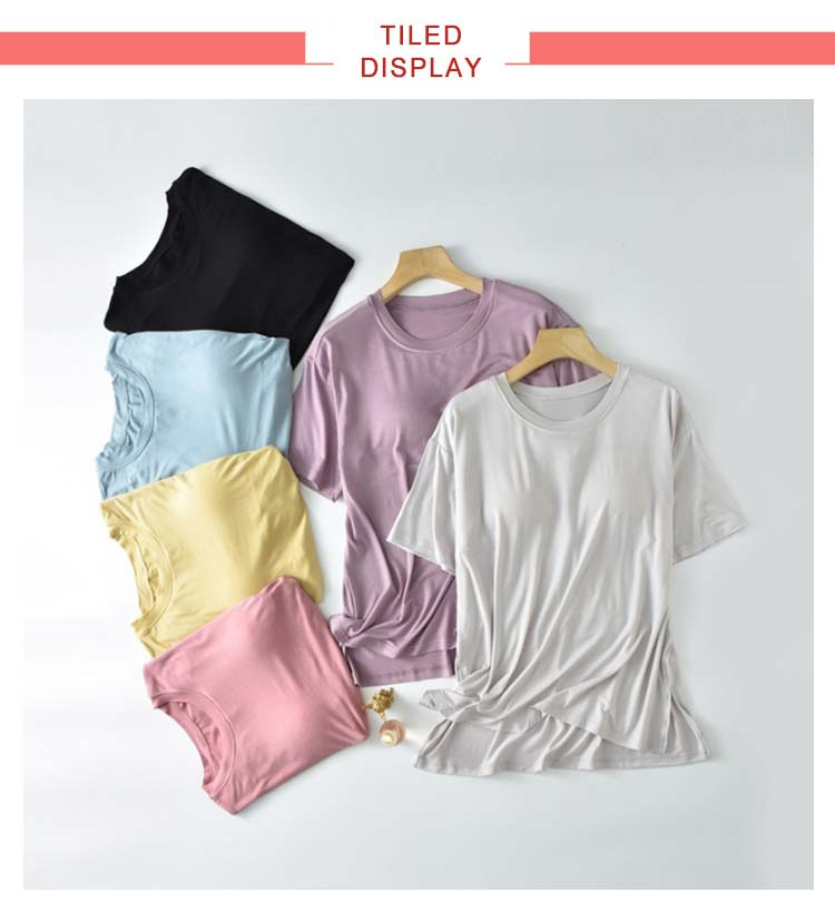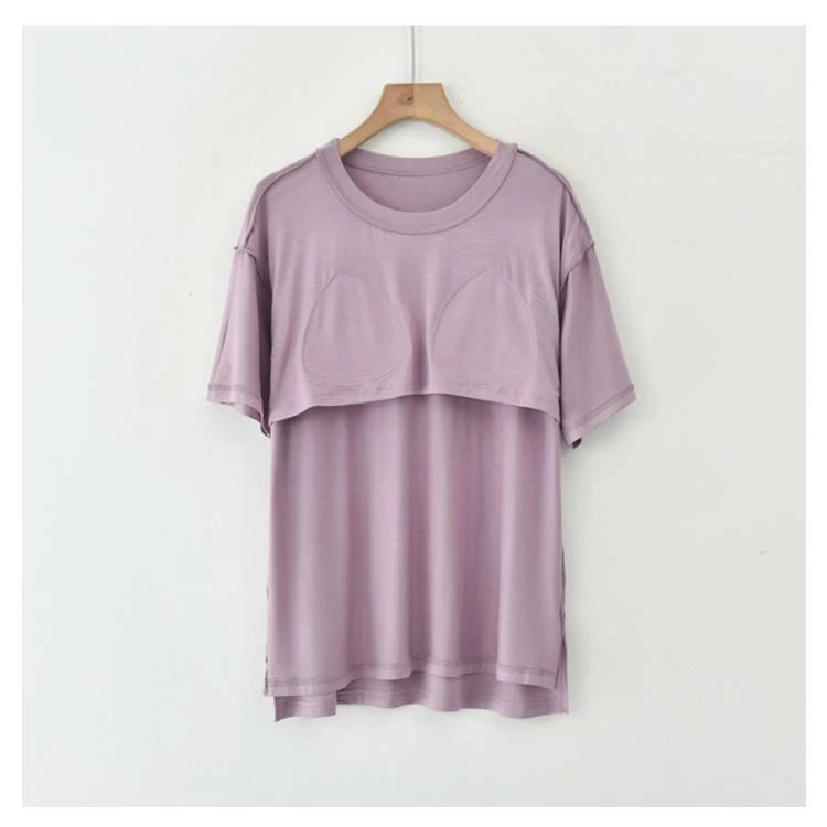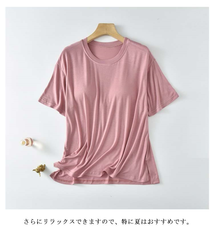 レディース 半袖Tシャツ 半袖 ブラトップ カップ付きTシャツ 無地 パット付き ラウンドネック ルームウェア カップ付き 春夏 大きいサイズ tシャツ アンダーフリー Uネック 締め付けない ナイトブラ ナイトウェア 部屋着 カップ付きインナートップス