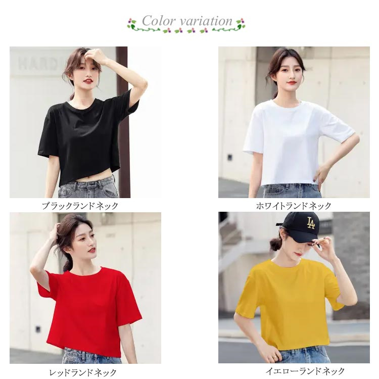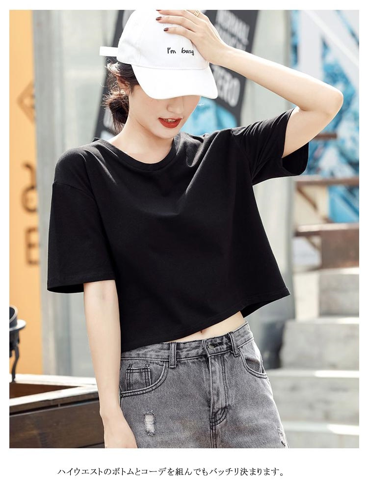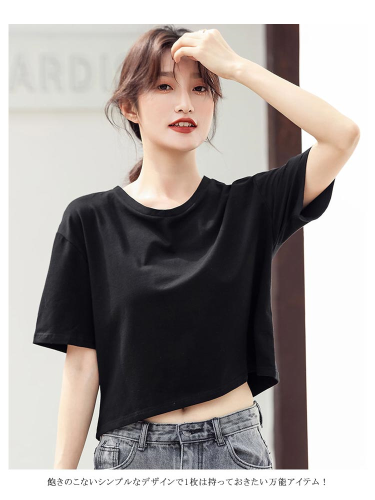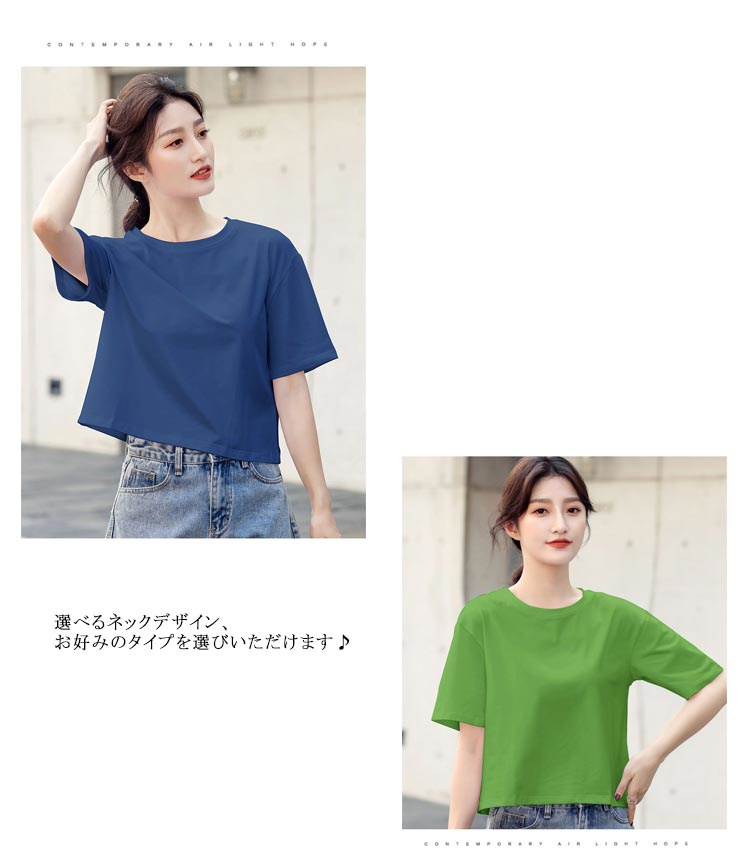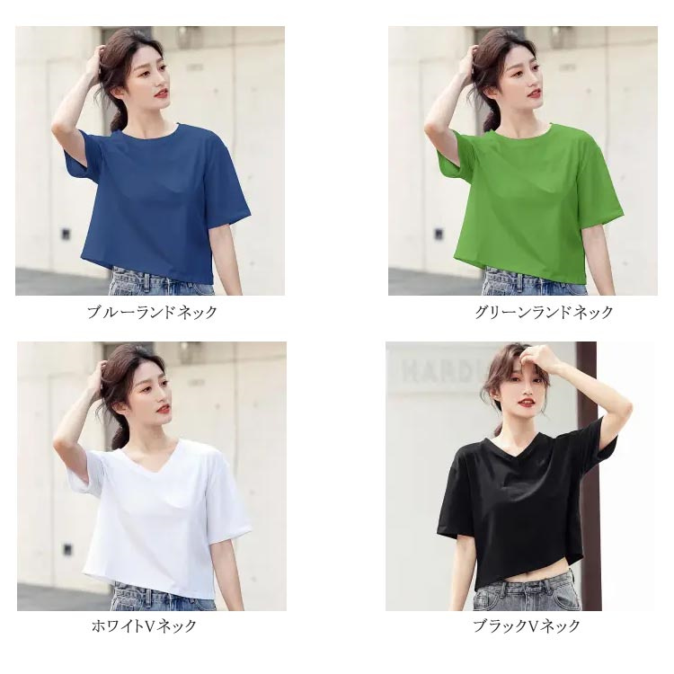 Tシャツ ショートTシャツ カットソー トップス レディース 半袖 ショート丈 おしゃれ ゆったり 体型カバー 短め 無地 大人可愛い 綿 コットン シンプル カジュアル 夏 春 秋 大きいサイズ Vネック ランドネック 通勤 通学 送料無料 S M L XL 2XL