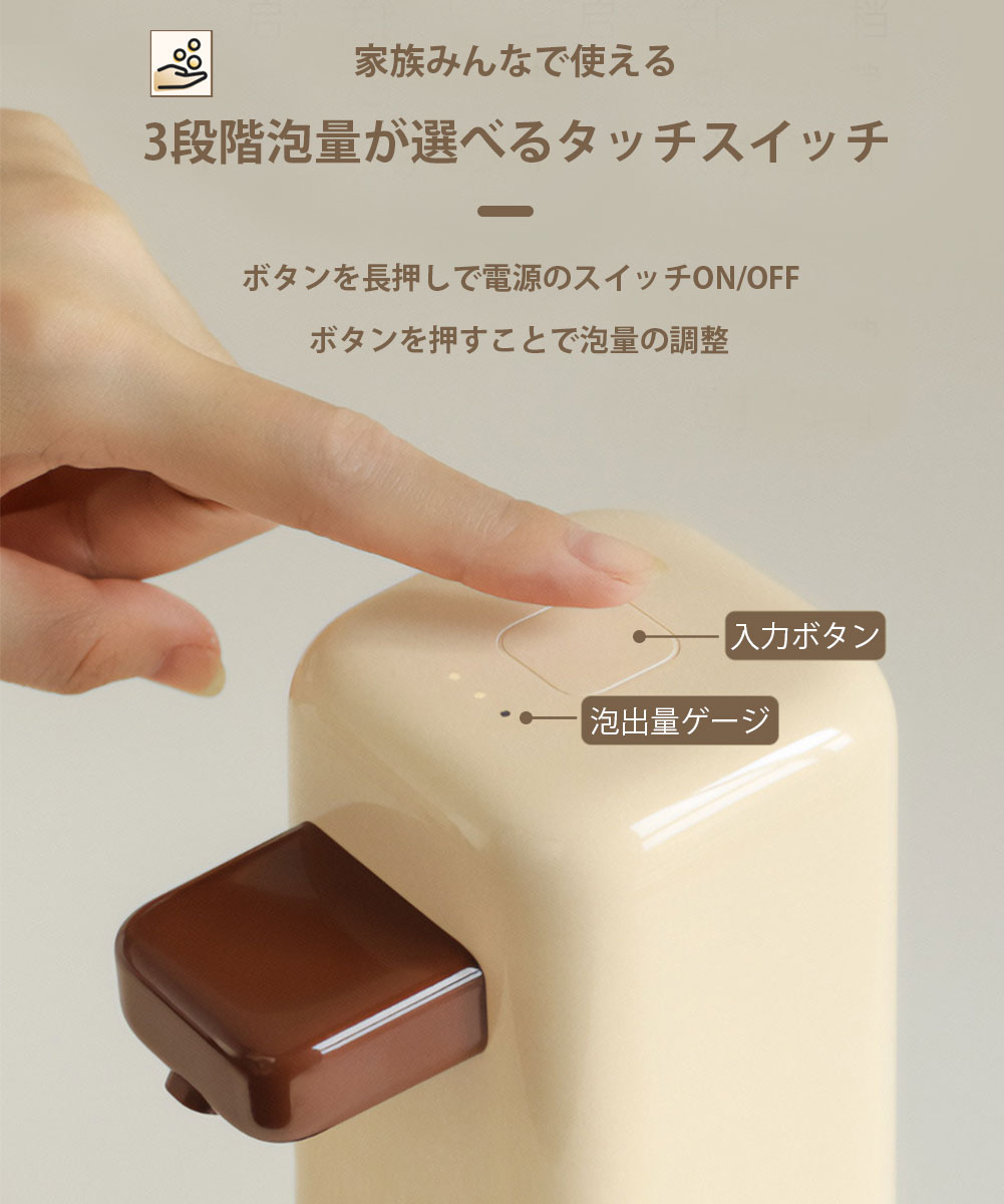 自動ソープディスペンサー ソープディスペンサー オートソープディスペンサー タッチフリー 自動 衛生的 スムーズ 手洗い ブラウン ブルー 茶色 青 泡 シャンプー クレンジング お風呂