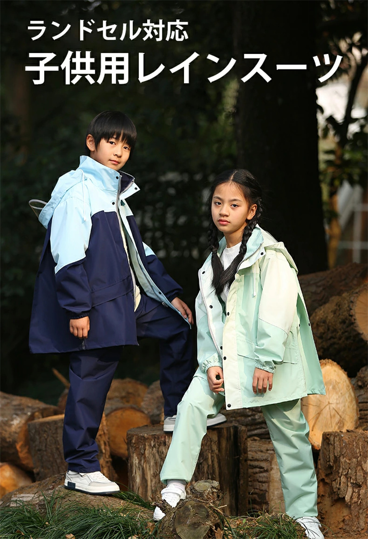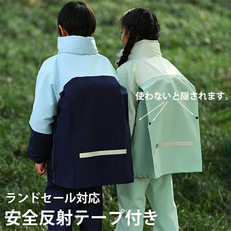 キッズ 上下 子供 小学生 ランドセル対応 レインパンツ カッパ 子供用 雨具 梅雨対策 収納袋付き 女の子 男の子 かわいい おしゃれ 防水 ジュニア セパレート ランドセル レインスーツ 小学校 レインウェア 軽量