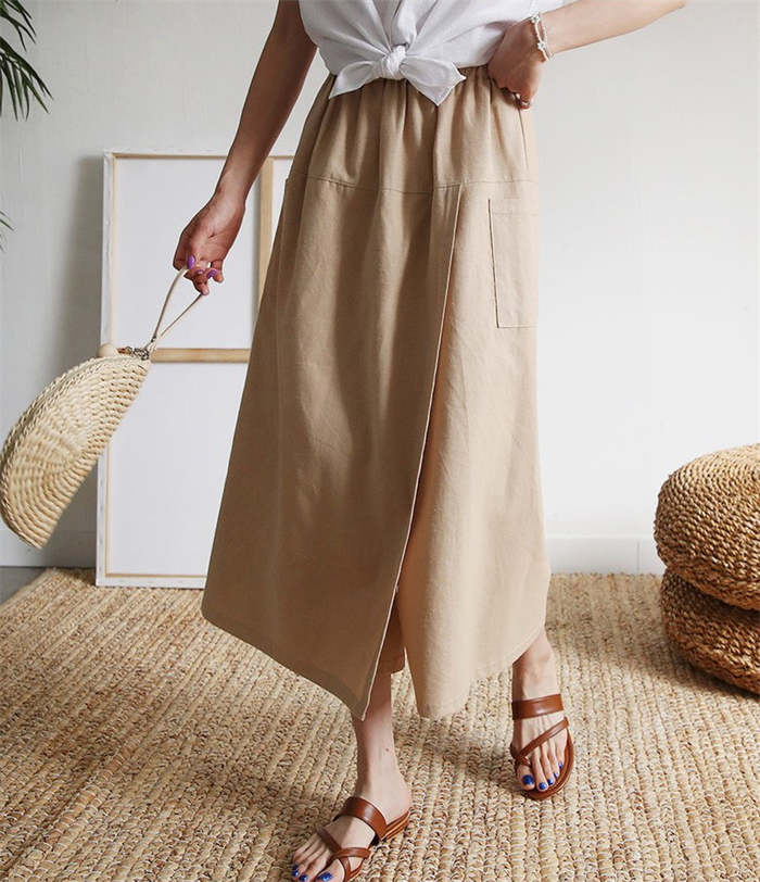 レディース ボトムス ガウチョパンツ ラップスカート風 キュロットパンツ 春 夏 春夏 ワイドパンツ 無地 スカーチョ ポケット ラップパンツ 綿麻 涼しい スカート ウエストゴム 9分丈 ナチュラル ゆったり 30代 40代 50代