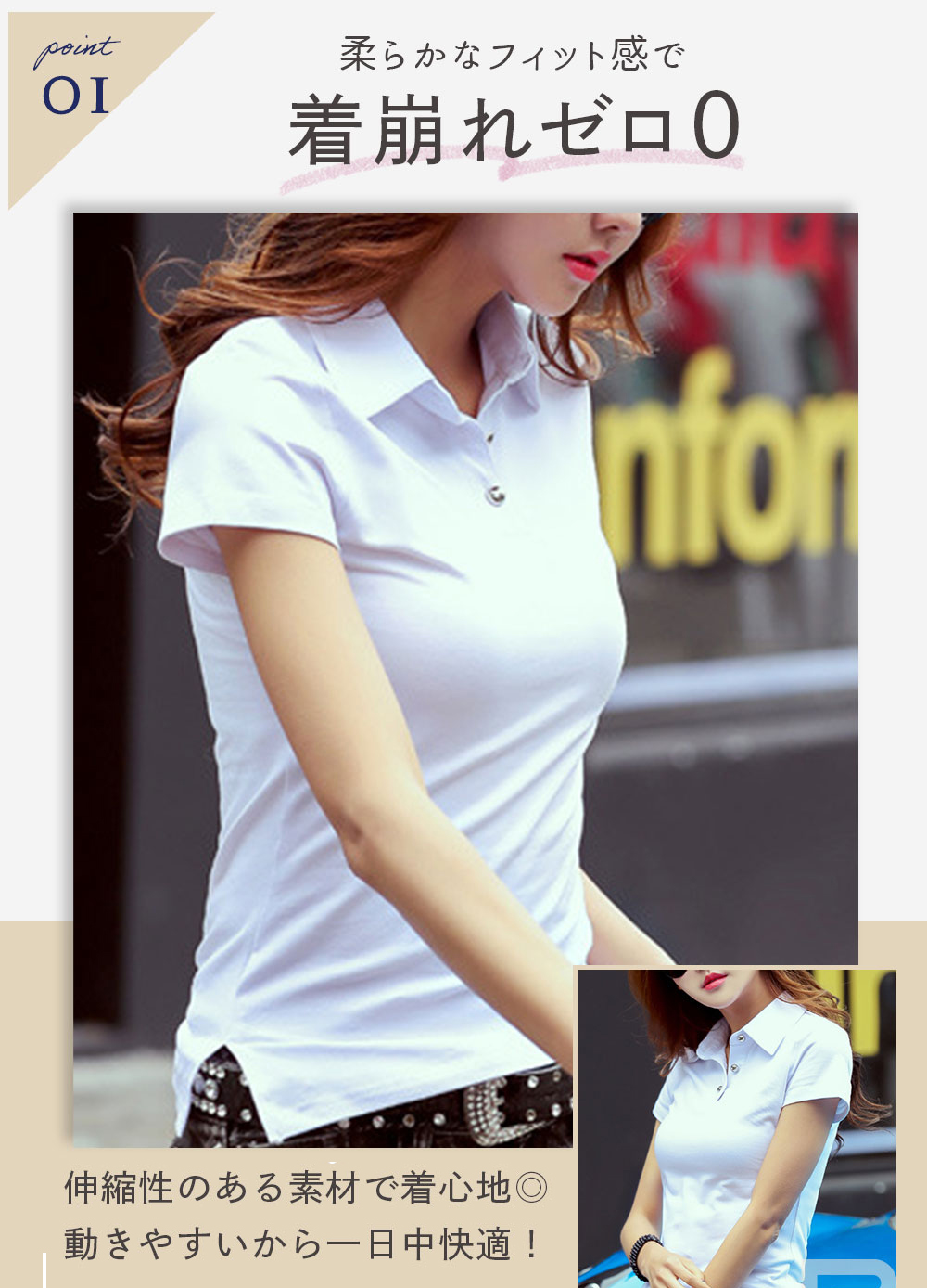 ・柔らかく適度な伸縮性があるので着心地がよく、着崩れも防ぐので長く着用できるのもポイントです。無地のシンプルなデザインで動きやすい作りのため、お仕事でも、テニスやゴルフなどのスポーツシーンでも、お揃いユニフォームとしても幅広くご活用いただけます。