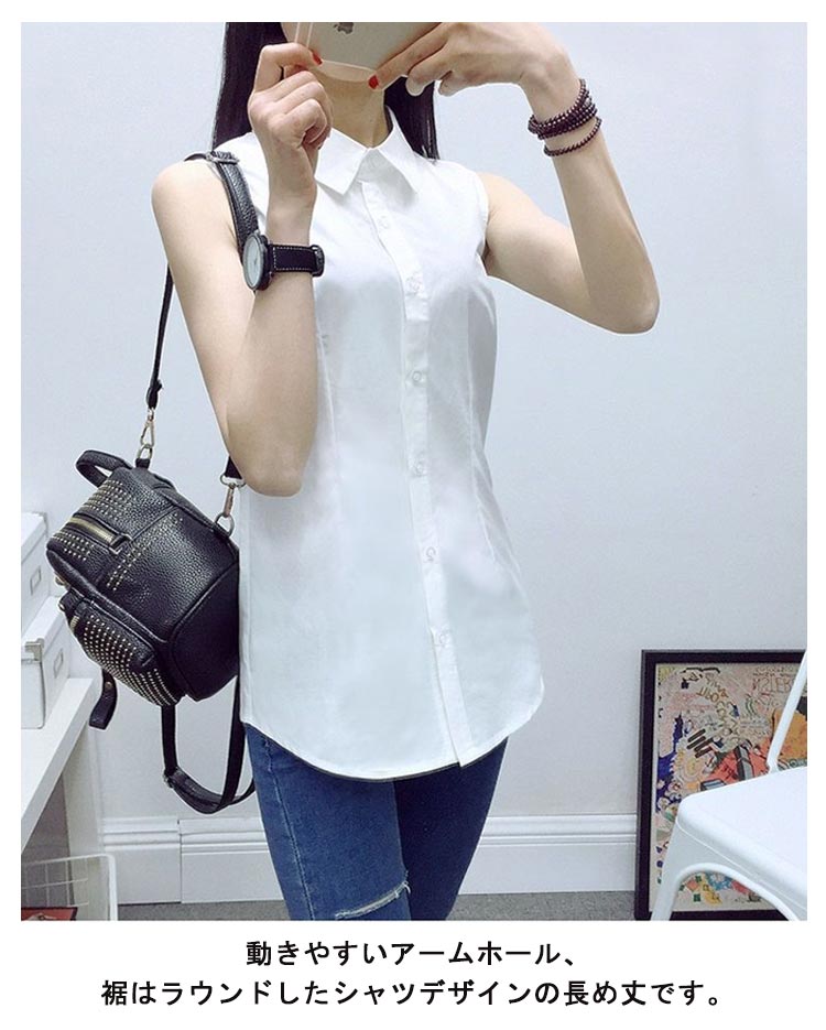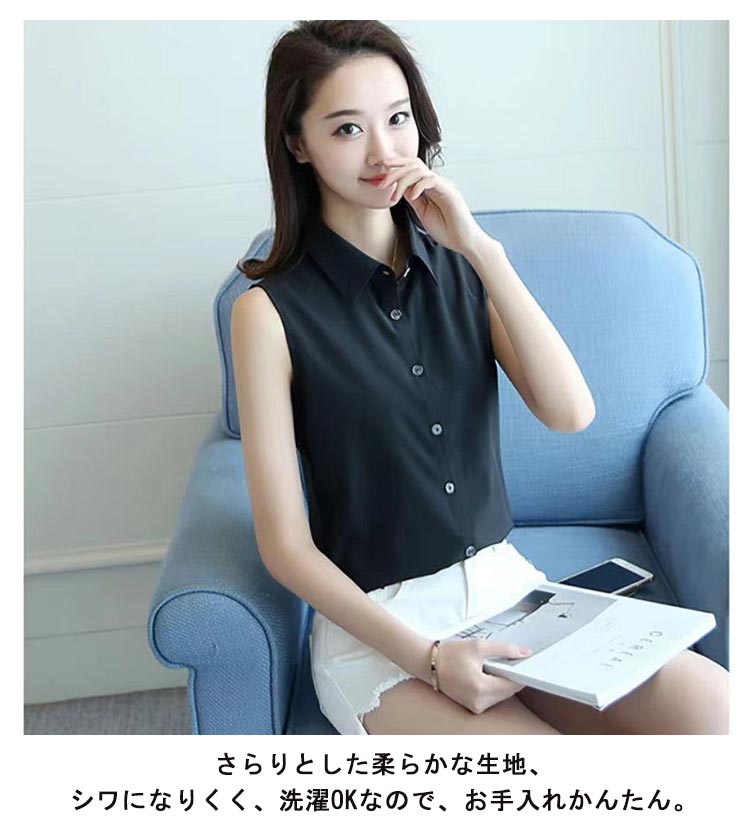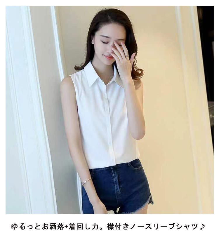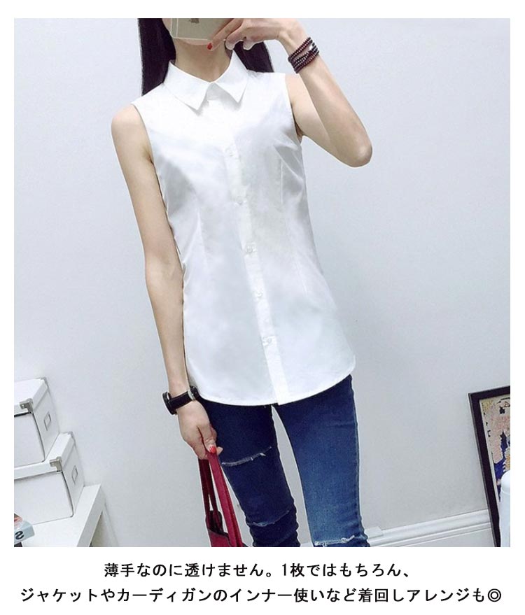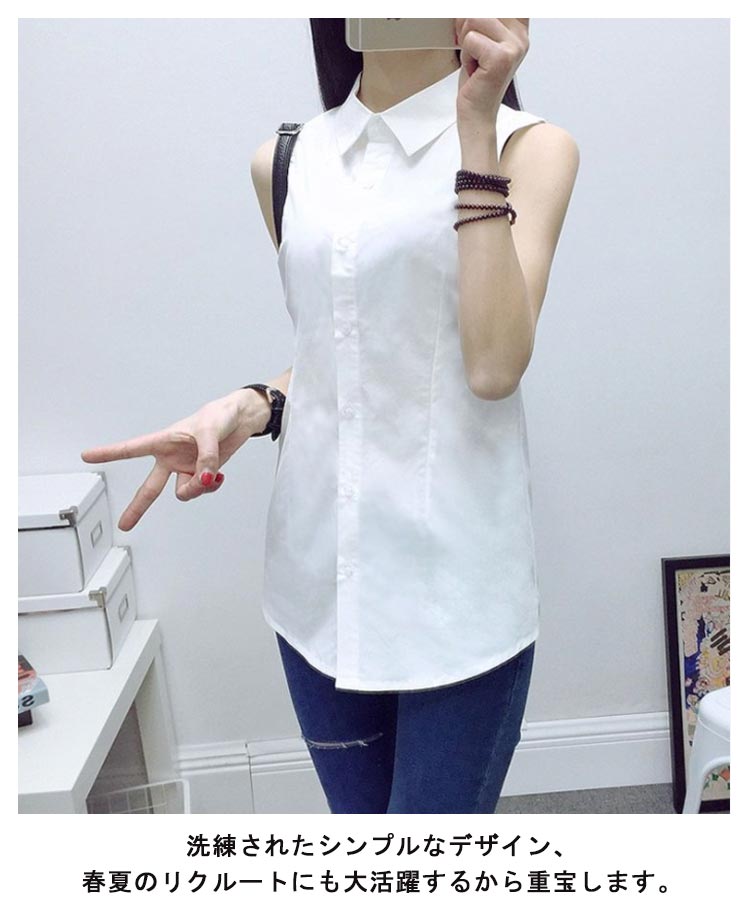 Yシャツ ブラウス ノースリーブ レディース シャツ 袖なし シンプル タンクトップ トップス 重ね着 レイヤード 襟付き シャツブラウス 白 黒 夏 薄手 スーツ インナー 就活 OL 通勤 白シャツ 大きいサイズ 無地 お洒落