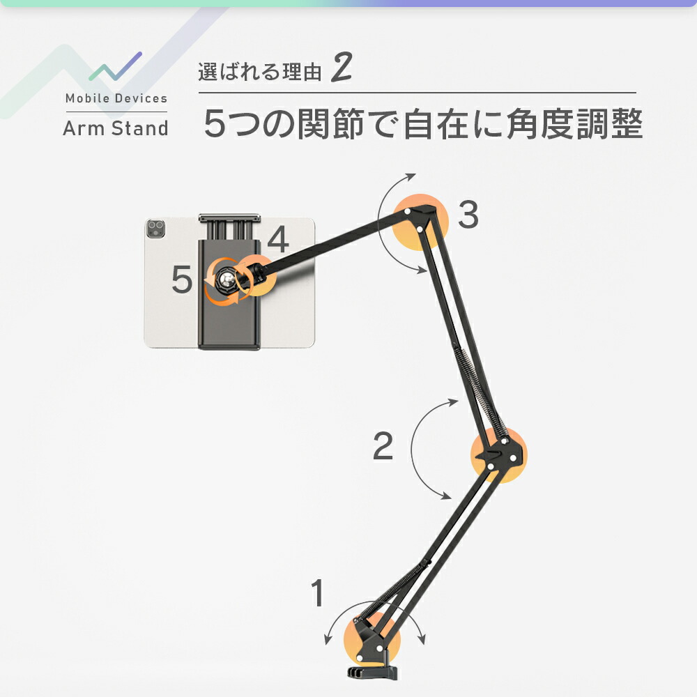 タブレットスタンド スマホスタンド タブレットアーム 携帯スタンド iPadスタンド 寝ながら ベッド用 テーブル用 ラック用 スマホ ホルダー 安定 揺れない iPad、Kindle