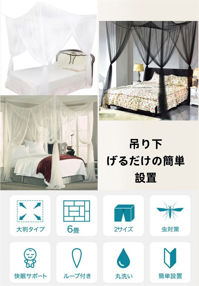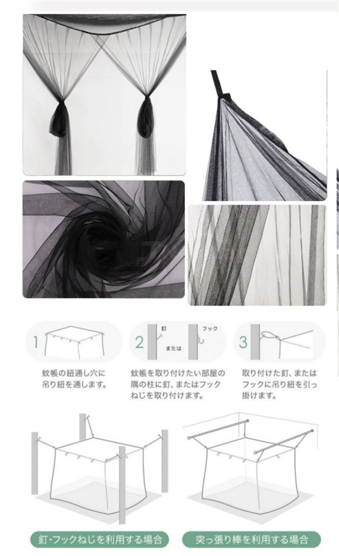 吊り下げ式 防蚊対策 蚊帳 かや 吊り下げ 屋内蚊帳 簡単設置 開閉可 密度が高い 6畳 大きい キング サイズ 無農薬タイプ 虫除け対策 モスキートネット 持ち運べる 収納便利