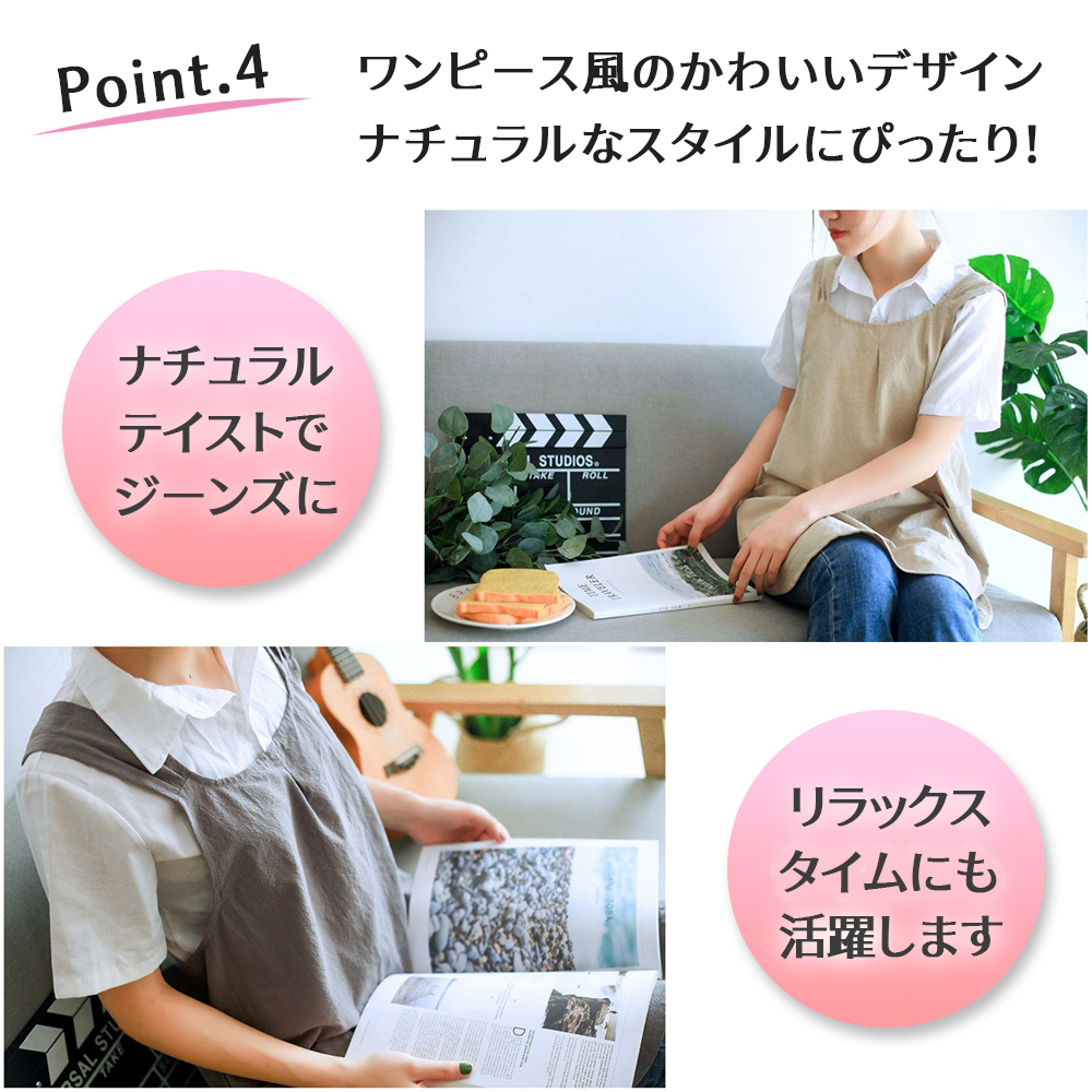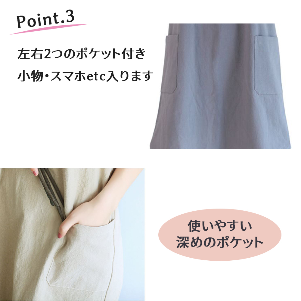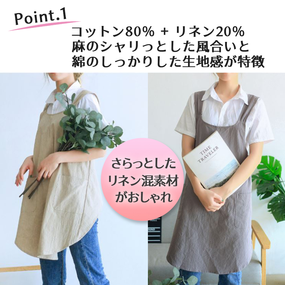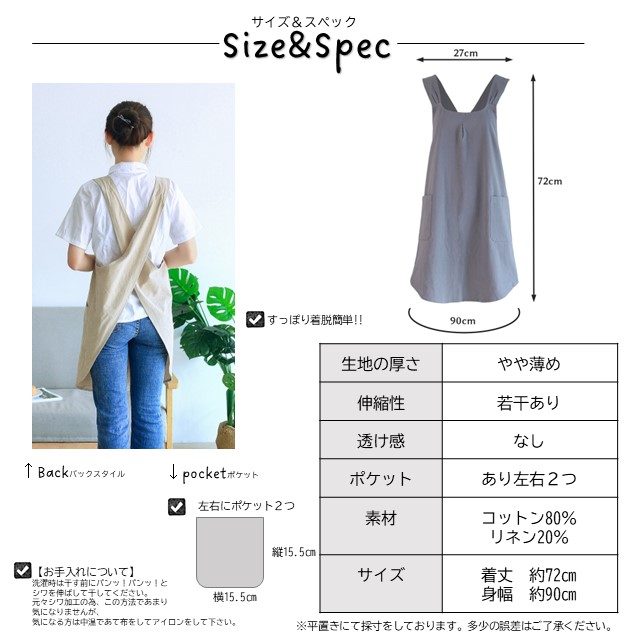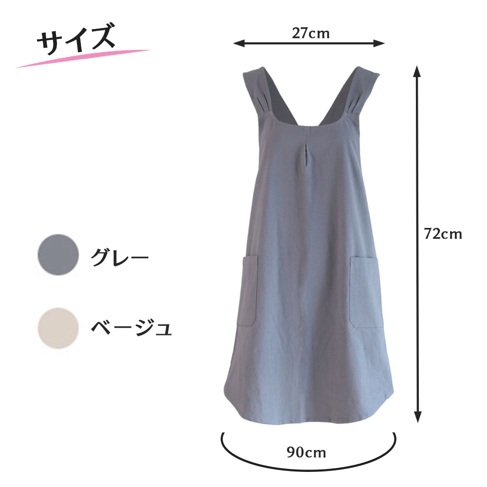 エプロン 無地 バッククロス リネン コットン ワンピース風 北欧風 ナチュラル シンプル おしゃれ ナチュラル 綿 麻混 すっぽり ベージュ グレー 保育士 介護 仕事着 作業 主婦 プレゼント ギフト かわいい 楽 肩こりしない ゆったり