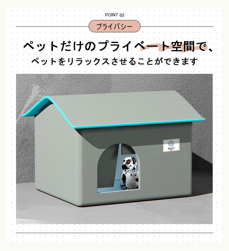 ペットだけのプライベート空間で、 ペットをリラックスさせることができます。