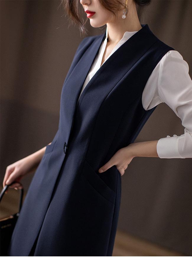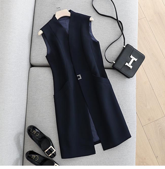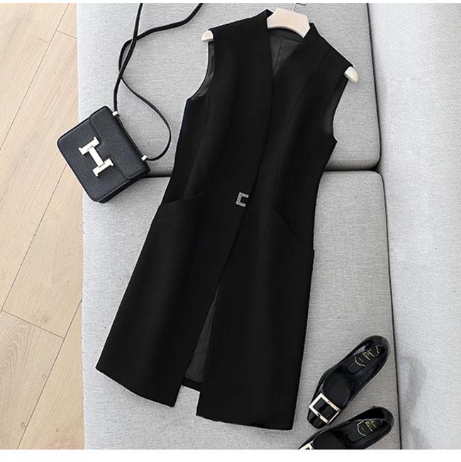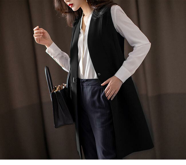 ■ロングベスト レディース ジレベスト オフィス ベスト 前開き ロングジレ チョッキ 通勤 羽織り 重ね着 レイヤード Vネック 薄手 送料無料