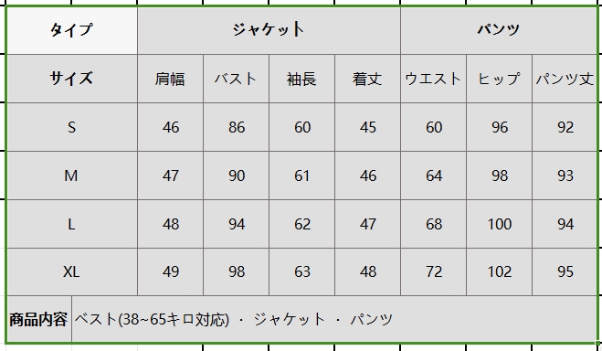 horizontal-key: ベスト1点 (1680円) ジャケット1点 (2680円) パンツ1点 (2680円) まとめ3点 (5680円)