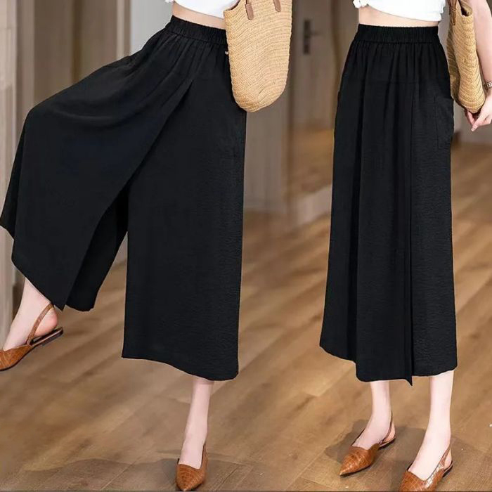 スカートのようなズボンは着た瞬間、下半身のぜい肉を隠して5kgやせて見えるんです、優雅で便利でズボンよりルージュして楽です!