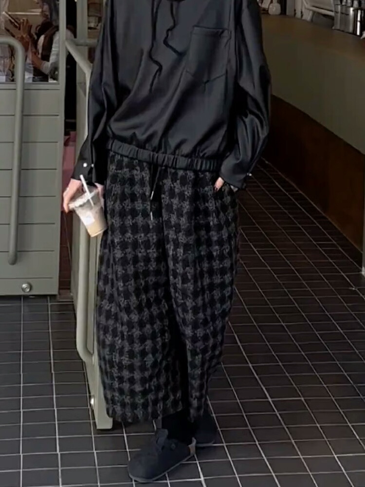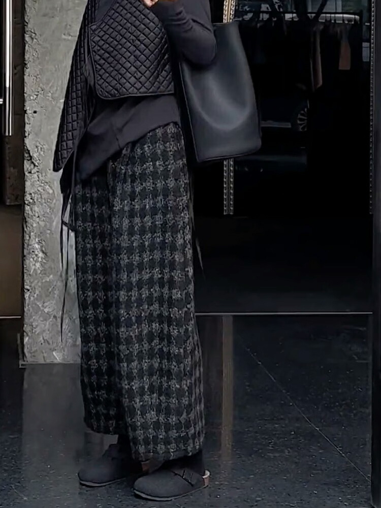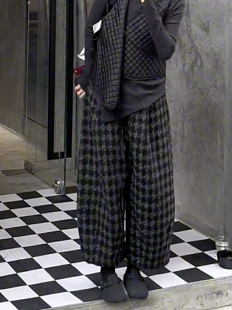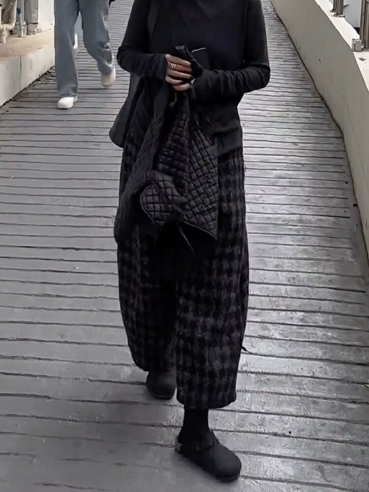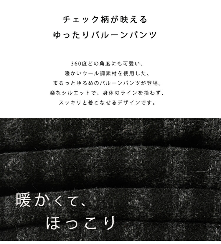 バルーンパンツ レディース 秋冬 チェック パンツ ウェストゴム ポケット バルーン イージーパンツ ウールパンツ 秋 冬