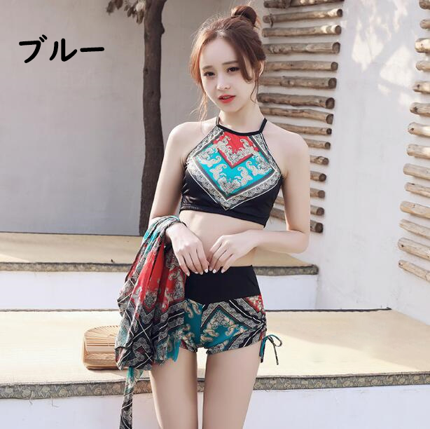 レディース 水着 ビキニ 体型カバー 3点セット 花柄 ショートパンツ ハイウエスト タンキニ マタニティ かわいい セクシー 女性 ママ水着 みずぎ ミズギ 40代 50代 60代 オシャレ お洒落 ママ 水着 30代 可愛い M/L/XL 2色